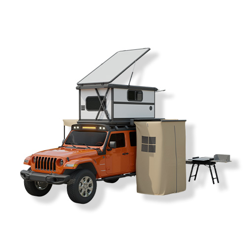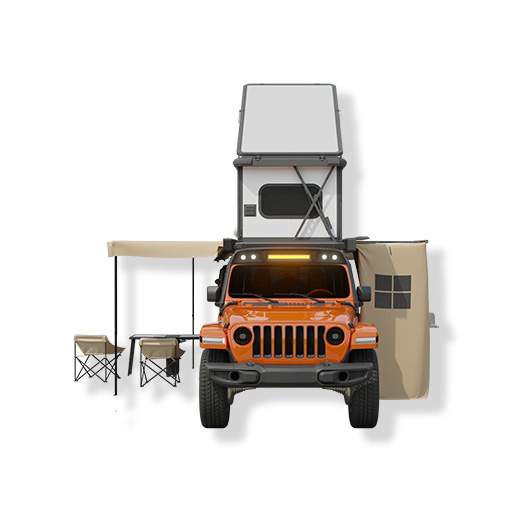 A one-touch retractable roof bedroom instantly transforms the vehicle into a dining room and kitchen, offering multiple uses in one vehicle. Conceal living components during wilderness exploration, and unfold a panoramic camping ecosystem when parked, easily immersing you in any natural environments. Provides modular support for all scenarios to meet the needs of outdoor exploration.