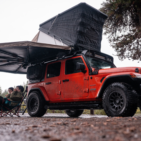 Designed for high-ground-clearance vehicles, this system provides shade and illumination for outdoor camping, with inherent wind and rain resistance.