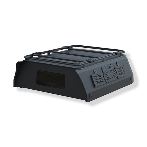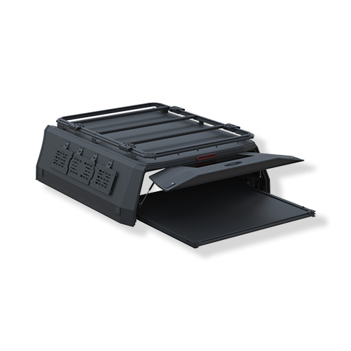 Roof platform: Equipped with an expanded rack system supporting tents, a 270-degree awning, and a front wind diffuser(with light).