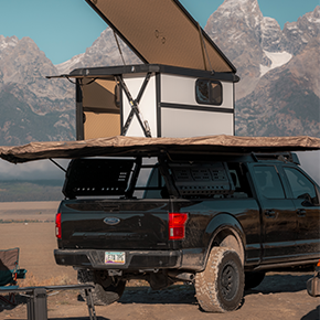 The primary material employs UV-resistant and high-abrasion-resistant polyester fabric, featuring a curtain door design. It is installed on a bed rack side panel and stores compactly in a portable case without occupying additional space.