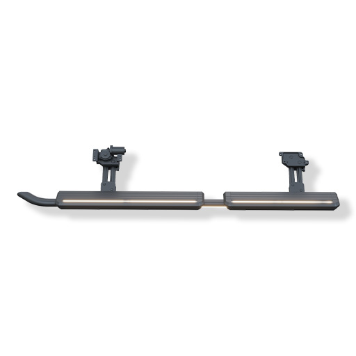 An automotive accessory designed for high-ground-clearance vehicles to assist entry and exit, positioned on both sides of the vehicle and functioning as steps. The system receives electrical signals (e.g., door opening/closing) to control a motor-driven mechanism, enabling automatic retraction and deployment of the side steps.