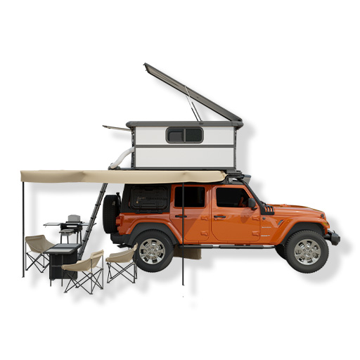 A one-touch retractable roof bedroom instantly transforms the vehicle into a dining room and kitchen, offering multiple uses in one vehicle. Conceal living components during wilderness exploration, and unfold a panoramic camping ecosystem when parked, easily immersing you in any natural environments. Provides modular support for all scenarios to meet the needs of outdoor exploration.