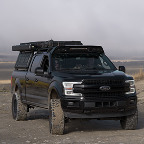 A hard shell canopy system installed above a pickup truck bed, designed to expand cargo space for outdoor camping enthusiasts while providing enhanced protection and functionality. The unit features: